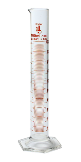 » Cilindro graduado de 100 mililitros en vidrio de borosilicato 3.3, Paredes gruesas, con escala métrica única y boquilla superior con vertido. Mayor durabilidad, químico y resistencia a la temperatura, grosor uniforme de la pared en toda la gama de mediciones.