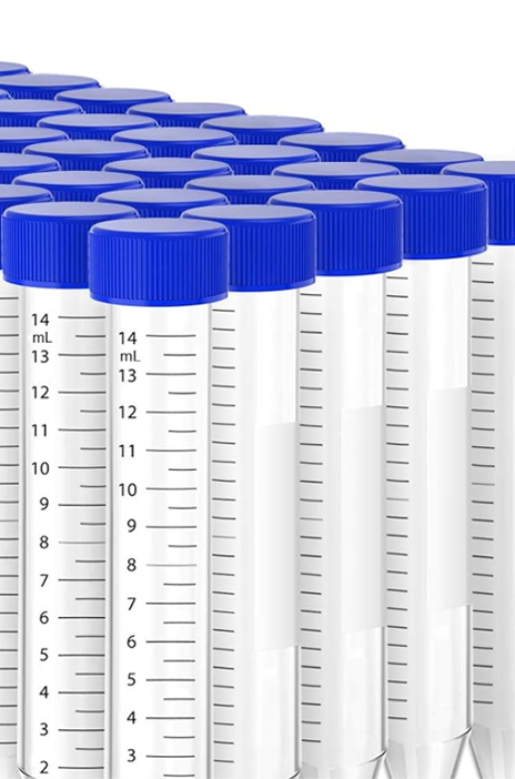 Tubos de plástico centrífuga con tapa de rosca Azul, fondo redondo, marcas claras graduadas, material de polipropileno (PP).